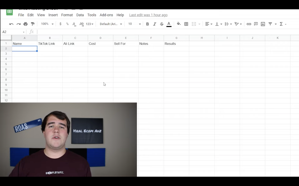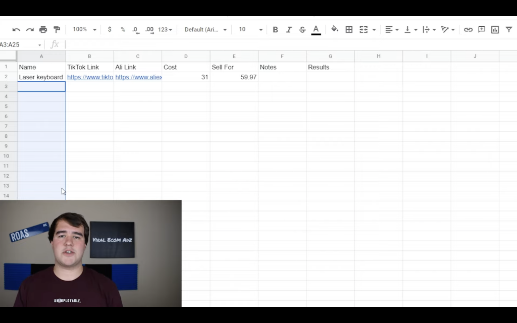 So, name, TikTok link, AliExpress link, how much it costs, what you’re going to sell it for.