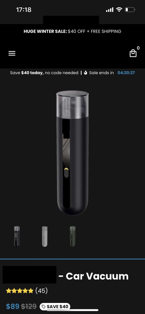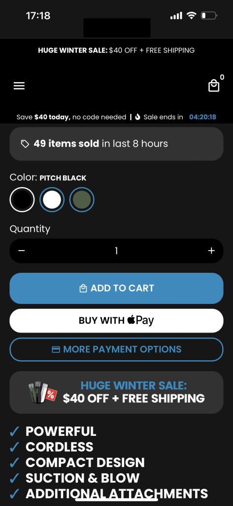 So we have a Scarcity-Timer & savings-badge in the top bar.