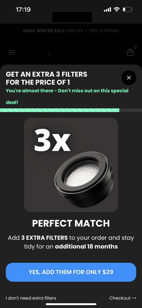 Once they click the CTA, we show them a Pop-Up with an Upsell.
